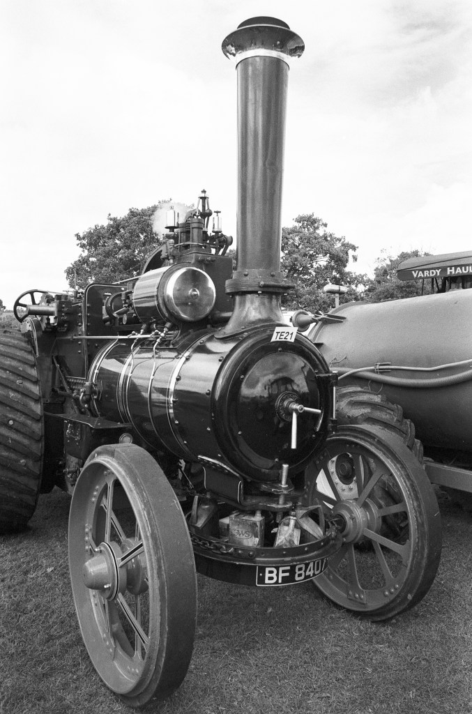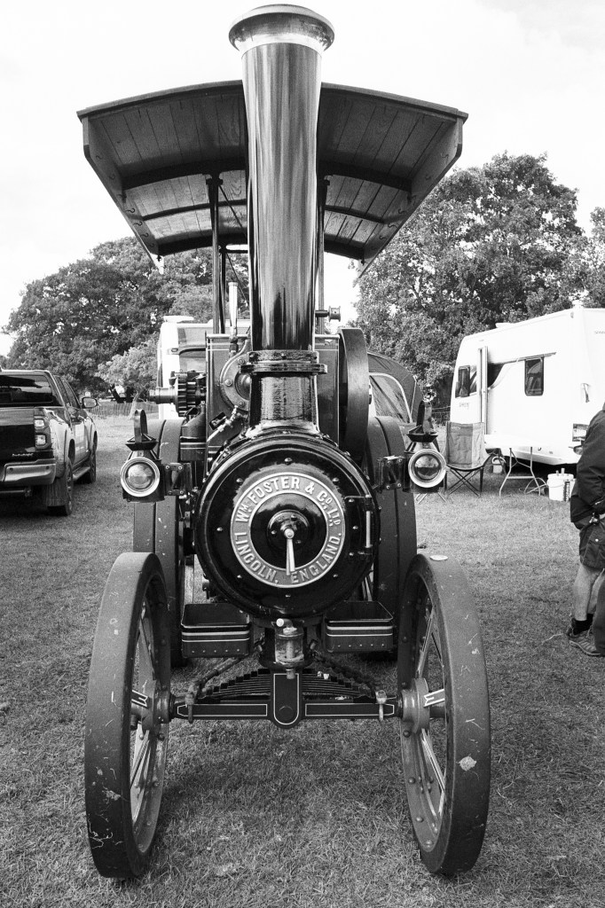 Before reviewing the images, I’d like to discuss the project. I was unexpectedly given the chance to attend the Hunton Steam and Tractor Fair. Despite a poor weekend weather forecast, Saturday between 11:00 and 15:00 offered the best window. I now shoot exclusively with Ilford film for monochrome work and have plenty of Pan F, FP4 Plus, and HP5 Plus on hand, ultimately choosing HP5. The challenge was that I had planned another project for the weekend and was travelling light when it came to lenses. I only brought the 50mm Nikkor H and the 28mm Nikkor f/3.5. I really wished I’d also packed my 85mm f/1.8 on a second Nikon FE, as events like this are ideal for candid portraits, and the 85mm is my lens of choice for that. As a result, I shifted my focus to the purpose of this WordPress site: to document ideas and techniques from the 35mm Work Book.