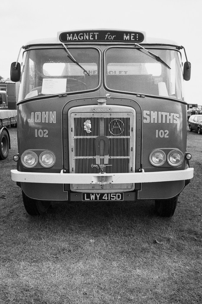 Look for the distortion in the images—this is a common outcome when using 28mm lenses at a fairly close distance to the subject. There’s nothing inherently wrong with the result, but some viewers might dislike the effect. If you examine every photo, you’ll observe some degree of distortion. The Nikkor 28mm f/3.5 is an affordable lens; I paid £65.00 for mine. The contrast and sharpness are excellent, especially considering the use of fairly grainy film. The high acutance of the dilute ID11 developer greatly enhances sharpness, and the compensating effect of the dilution delivers impressive latitude. The image of the Atkinson lorry, TUE 416N, was taken just as it started to rain—if you look closely, you can see a raindrop on the lens. I have no hesitation using my cameras in the rain!